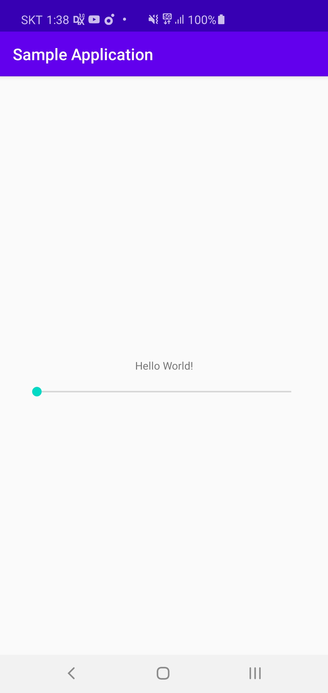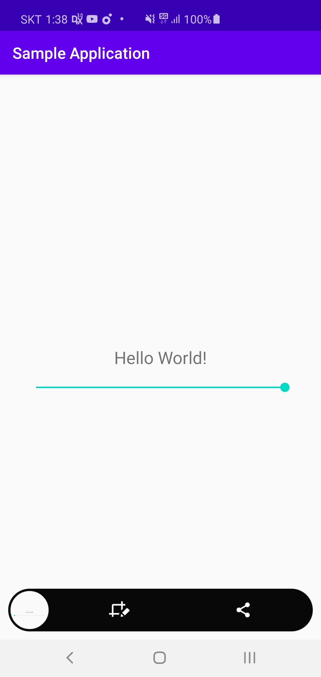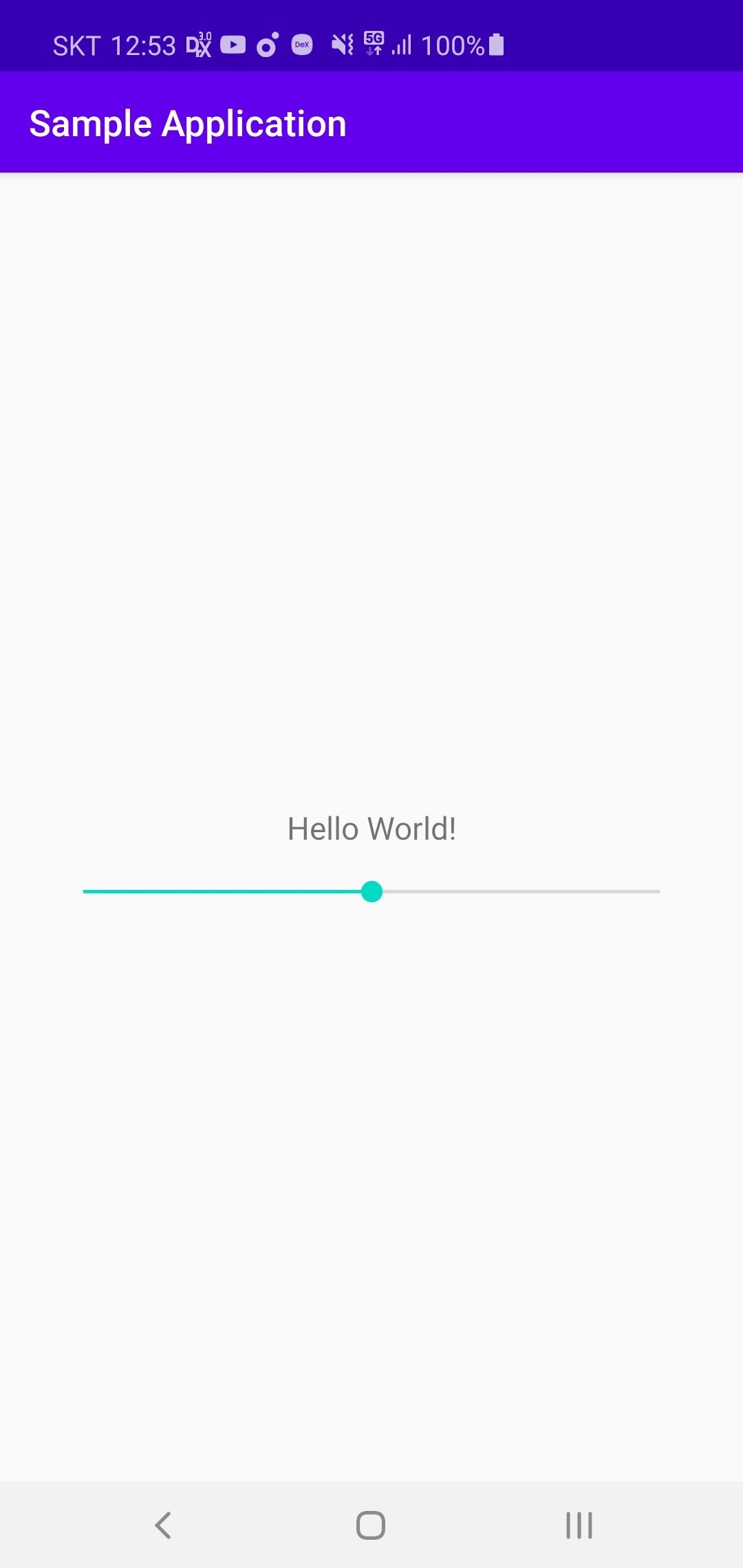 첫 화면 기본 Hello World 문구에 SeekBar를 하나 추가합니다.