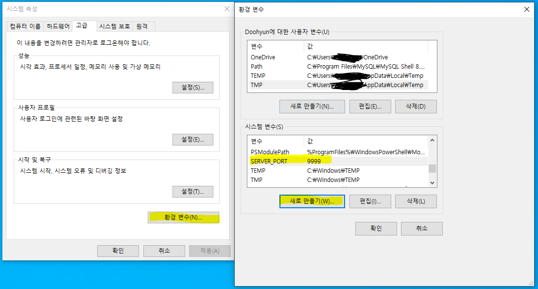 리눅스에서는 위와 같이 하지만 윈도우의 경우 환경변수에 시스템 변수로 추가해야 합니다.
