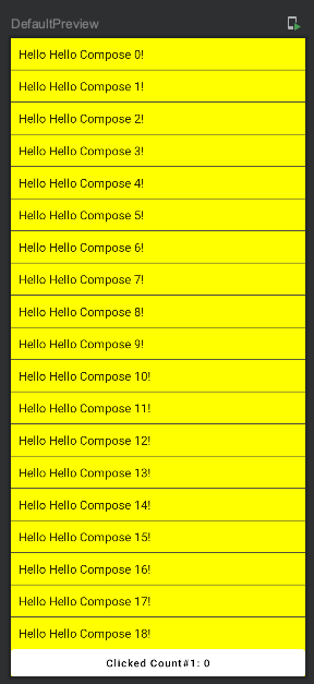 LazyColumn은 RecyclerView를 대체하는 Compose의 구성요소 입니다. 1000개의 데이터를 넘겼지만 화면에 표시하는 Component에 대해서만 recomposing되어 표시되기 때문에 효율적으로 화면을 구성합니다.
