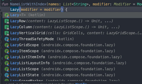 fun NameListWithIndex(names: List<String>, modifier: Modifier = Modifier) {