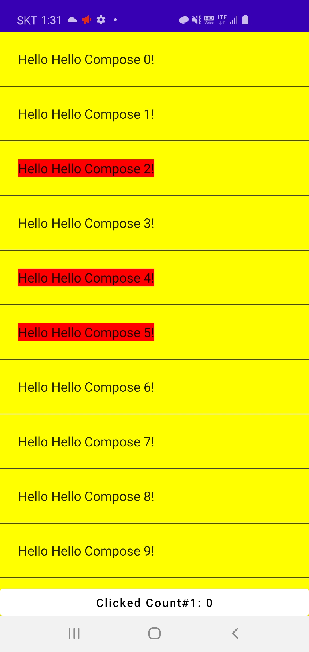 Column은 기본적으로 scrollable 속성을 갖지 않기 때문인데, 이를 위해서 LazyColumn을 사용하도록 변경해 보겠습니다. (물론 Column에도 속성을 추가하여 스크롤 가능하도록 만들수도 있습니다.)