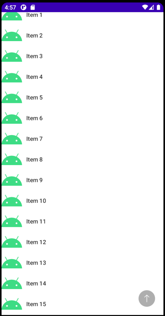 버튼은 list위에 떠야 합니다. 따라서 화면을 일단 Box로 묶습니다. Box는 FrameLayout 같은 형태의 layout을 구성하기 위한 composable입니다. Box 내부에서 ScrollToTopButton의 위치를 Modifier.align으로 지정해 줍니다.