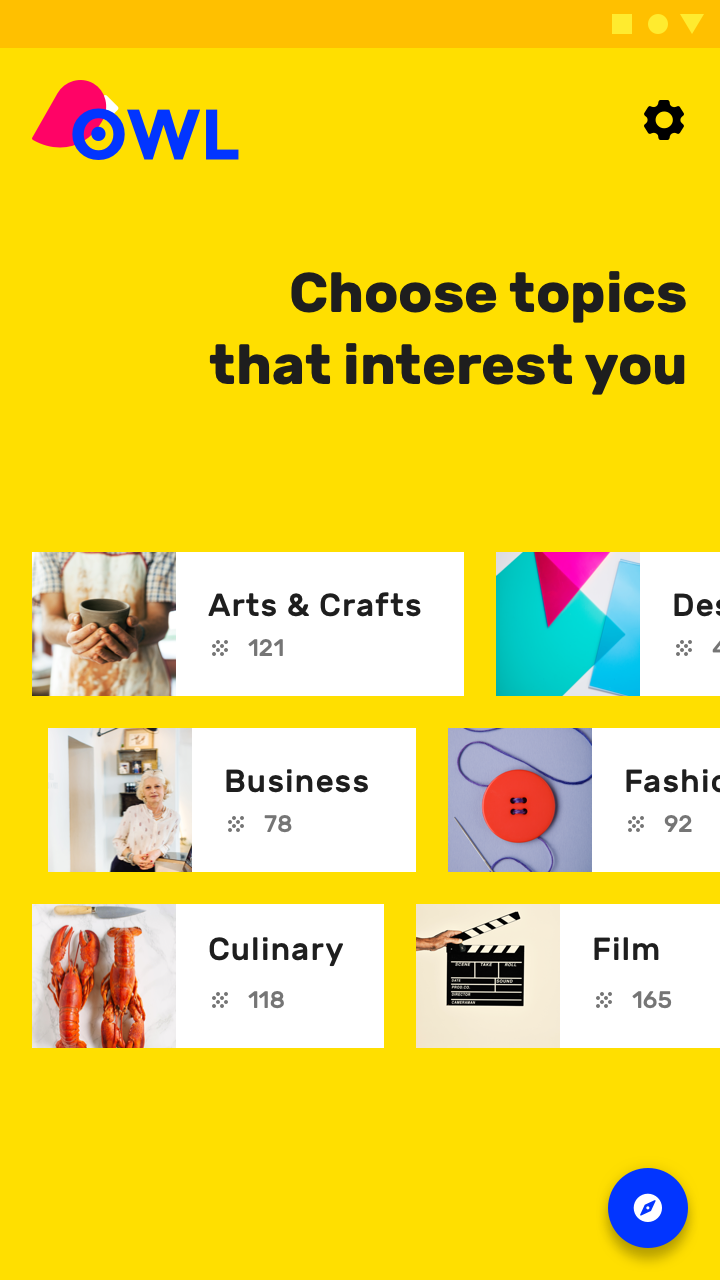 위 그림은 안드로이드에서 제공하는 Material Study Owl'의 화면으로 중간에 가로로 스크롤되는 staggered grid layout을 custom으로 만들어볼 예정입니다.