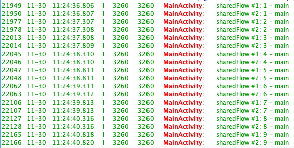 Log.i(TAG, "sharedFlow #1: $it - ${Thread.currentThread().name}")