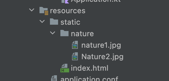 수신받을 이미지 두장을 서버에 추가합니다. "nature1.jpg"와 "nature2.jpg" 두장으로 resources/static/nature/ 경로에 추가하도록 합니다.