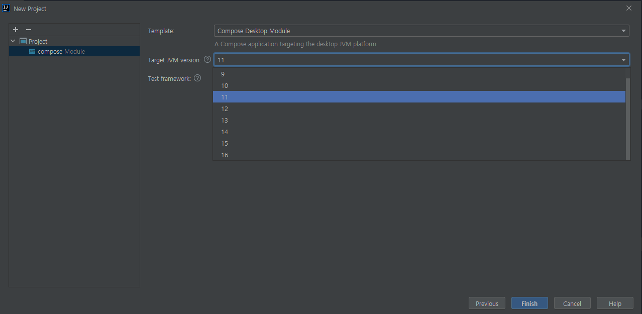 이때 Project Template는 Compose Desktop Application을 선택합니다.