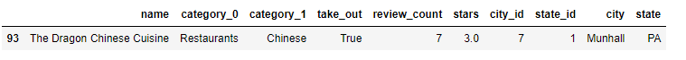 rest = df['name'] == 'The Dragon Chinese Cuisine'