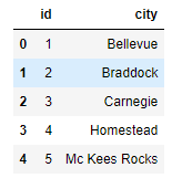 state는 두곳밖에 없네요. 이제 같은 방식으로 cities가 조인되어 추가된 dataframe에 한번더 조인 합니다.