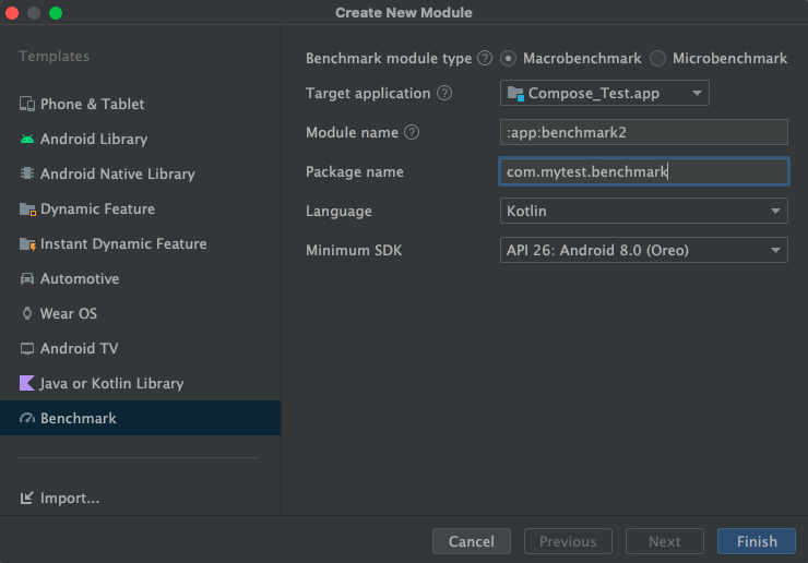 Manually 하게 Logcat이나, App Inspector를 분석할수도 있지만 여기서 UiAutomator를 이용한 방법을 소개합니다. Compose를 UiAutomator를 이용하여 자동으로 테스트 하기 위해서는 Macrobenchmark를 사용해야 합니다.[5]