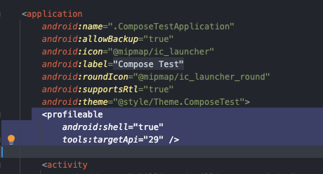 추가로 AndroidManifest.xml에는 아래와 같은 "<profileable ... "문구가 추가 됩니다.