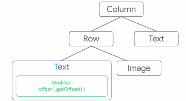 Modifier는 Immutable 객체 입니다. 따라서 처음 코드의 경우 Modifier의 offset이 변경되면 새로운 Modifier 객체로 변경됩니다. Composition Tree로 보면 아래와 같습니다.