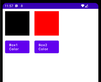 위와 같은 Box 두개와 버튼 두개를 만듭니다. 버튼을 누를때마다 색깔이 토글되도록 합니다.