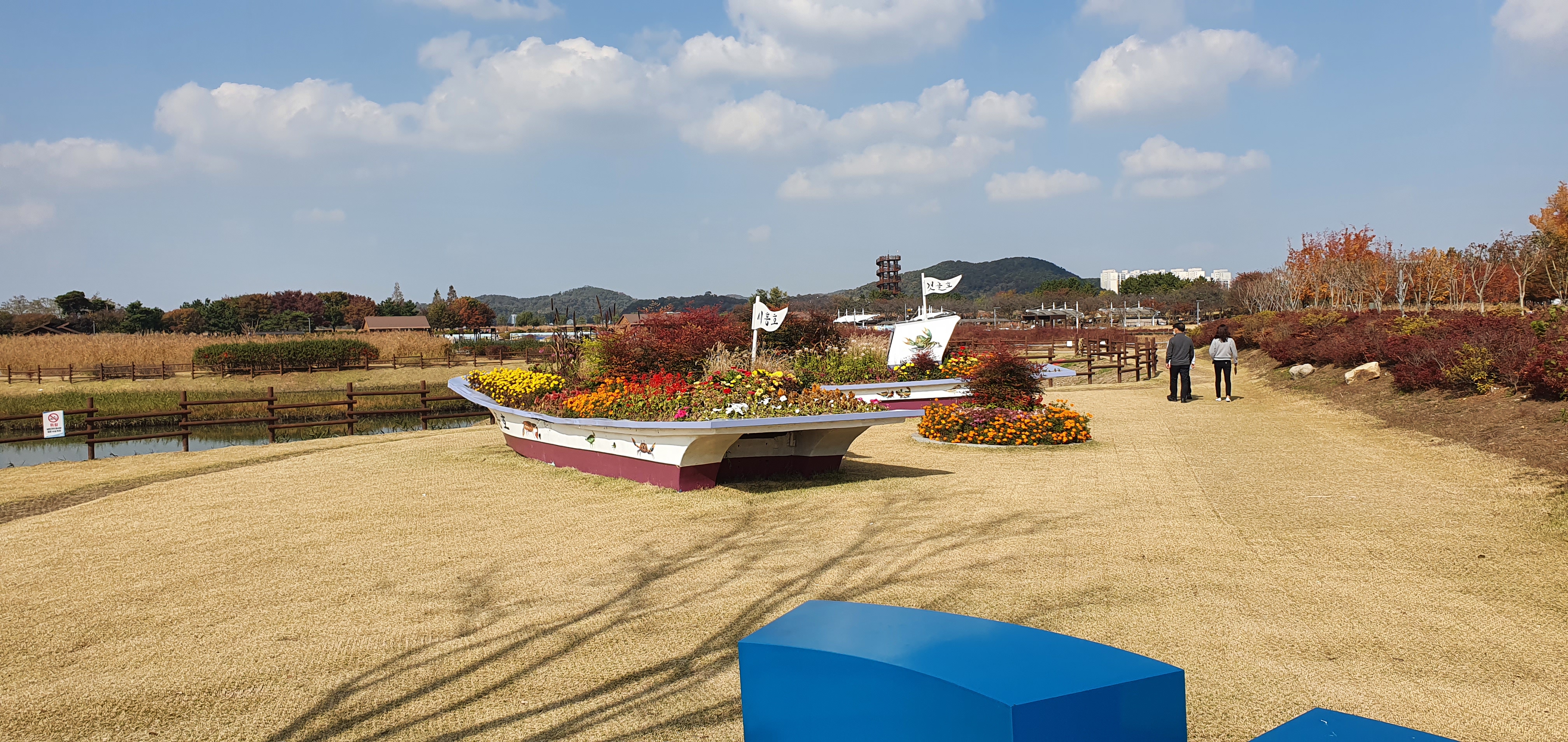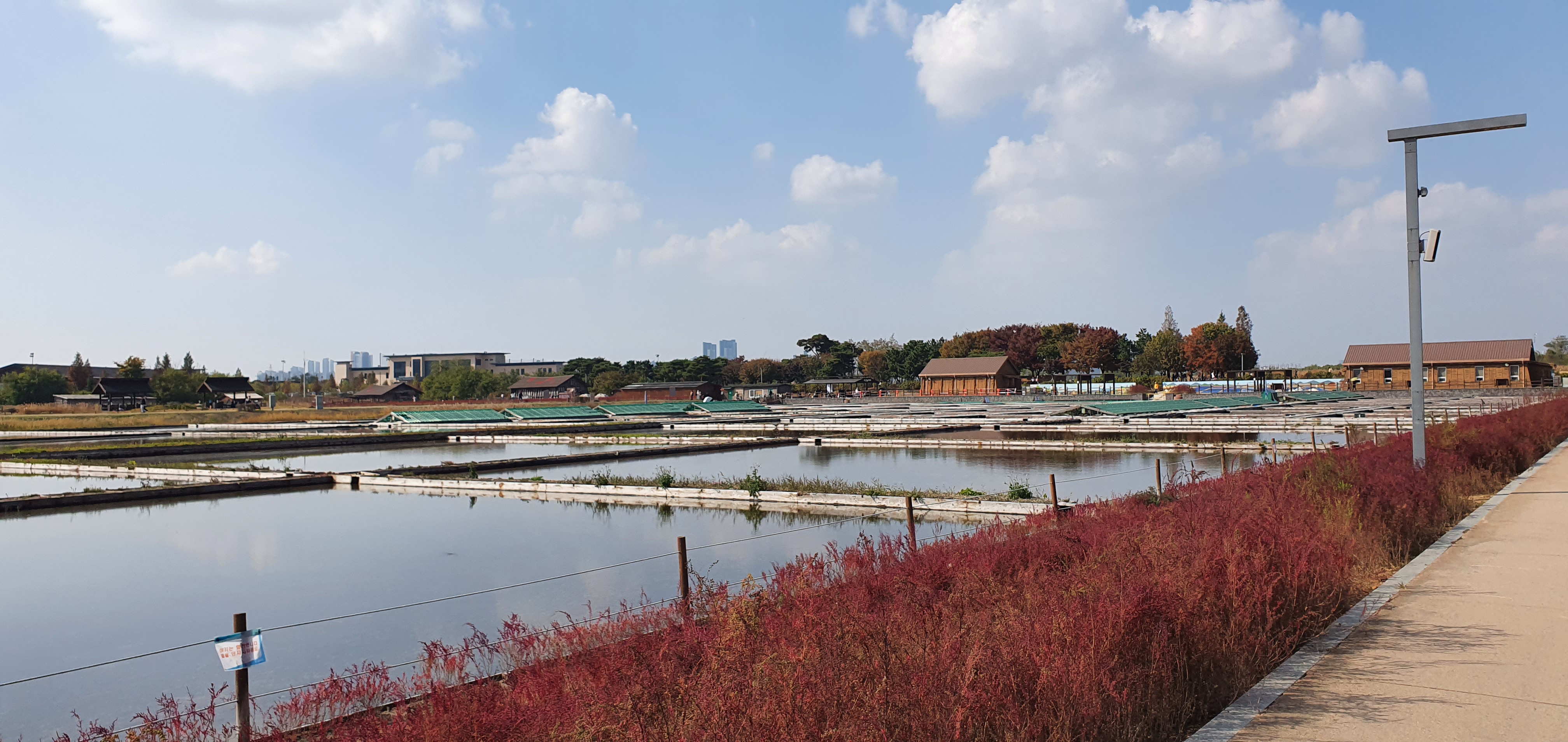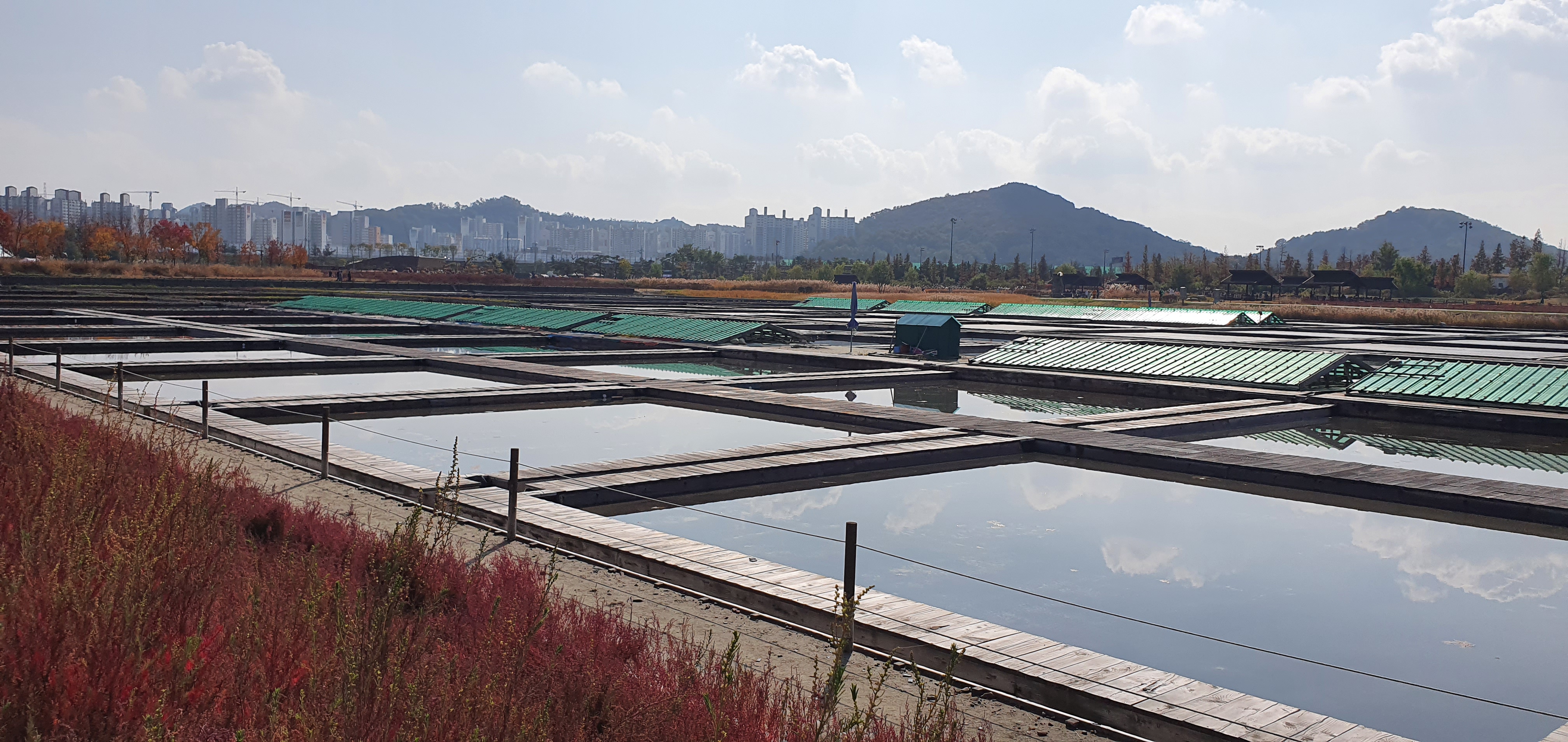 공원 한 가운데에 위치하는 염전인데, 신기하지 않을수 없습니다. 가을 하늘빛과 염전이 서로 같은색을 띄며, 나들이 나온 기분을 한껏 돋아주는듯 합니다.