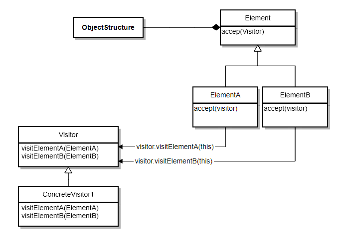 실제 Visitor pattern의 Class diagram과 아래와 같습니다. 두개의 Diagram이 서로 mapping 되는지요?