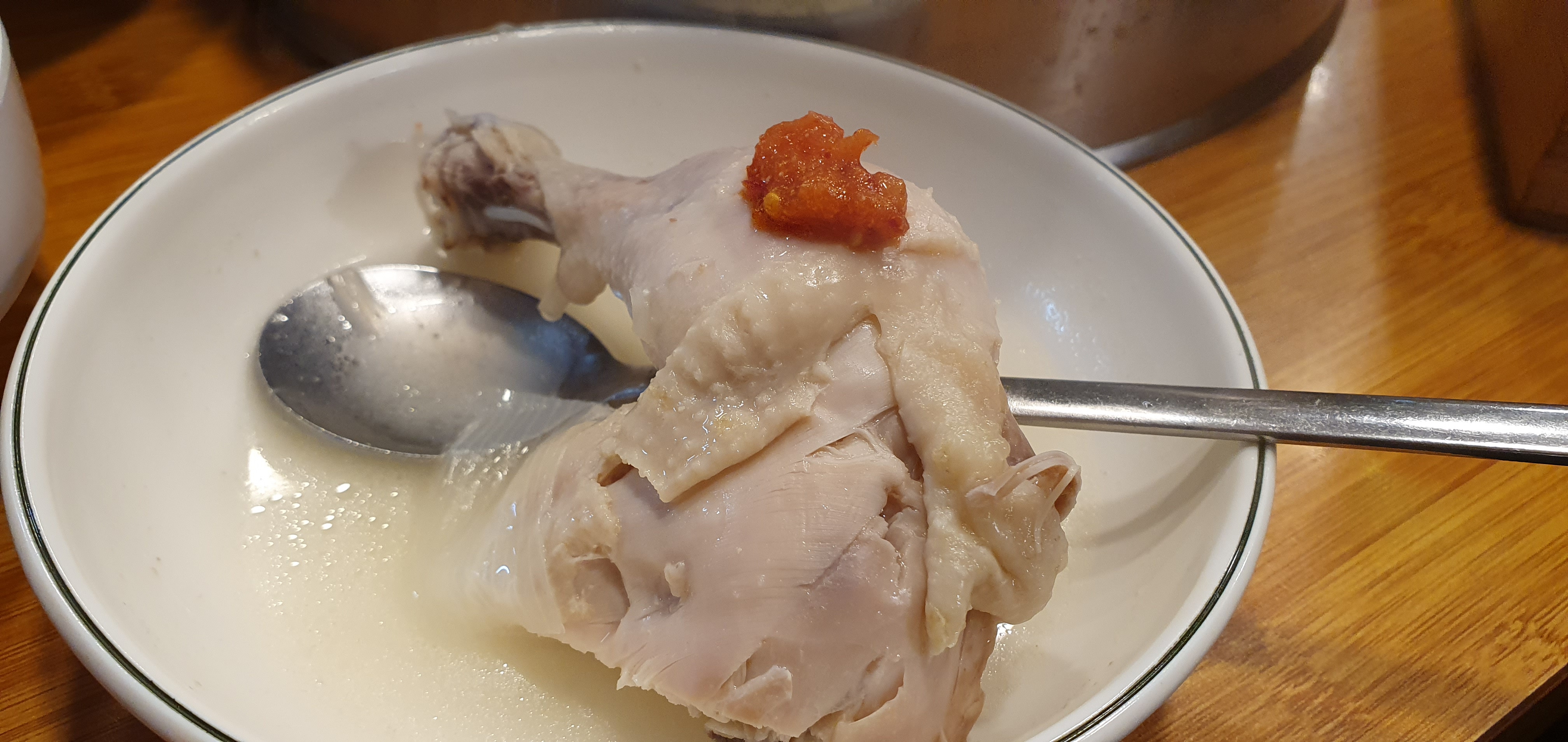 저는 닭 백숙류를 그다지 선호하지 않는 편임에도 불구하고 꽤 괜찮은 한 끼였습니다. 닭백숙의 맛이 사실 크게 다른 곳과 다르지는 않습니다. 다 거기서 거기지요. 하지만 이 가게는 찍어먹는 장이 독특했고, 닭백수가 잘 어울리는 게 사람을 끌어당기는 매력이 아닌가 싶습니다.
