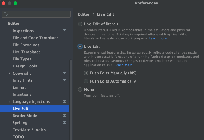 기존 Dolphin부터 Layout Inspector와 recompose에 대한 성능을 보는것에 진심인것 같았는데, Compose 관련된 부분은 이번 버전에서는 약간 힘을 뺀듯한 모양세 입니다. 실제로는 매우 큰 기능이 들어오긴 한건데 experimental이라 제약점들이 꽤 많아 보입니다.[2]