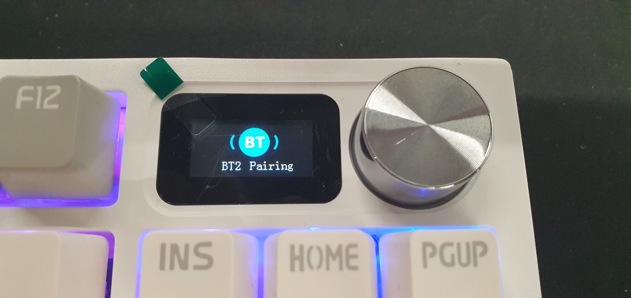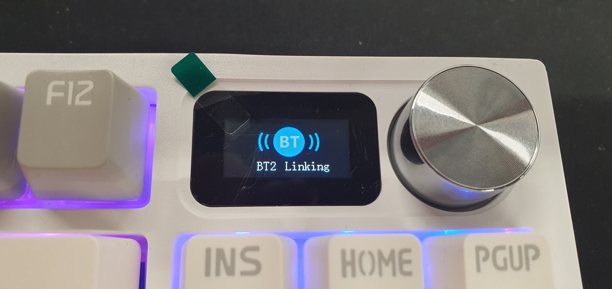 전용 동글의 경우 USB에 꼽고 키보드 메뉴에서 2.4g를 선택하면 바로 연결이 됩니다. BT는 세 개의 채널을 제공하며, 선택 후 노브를 클릭하면 "BT Linking"이란 문구가 화면에 표시됩니다. 다만 이 경우 맥북에서 아무리 BT 스캔을 해도 장치가 검색되지 않습니다. 이건 paring 모드가 아니라 그냥 BT1번 채널 쓸래.. 를 나타내는 문구입니다.