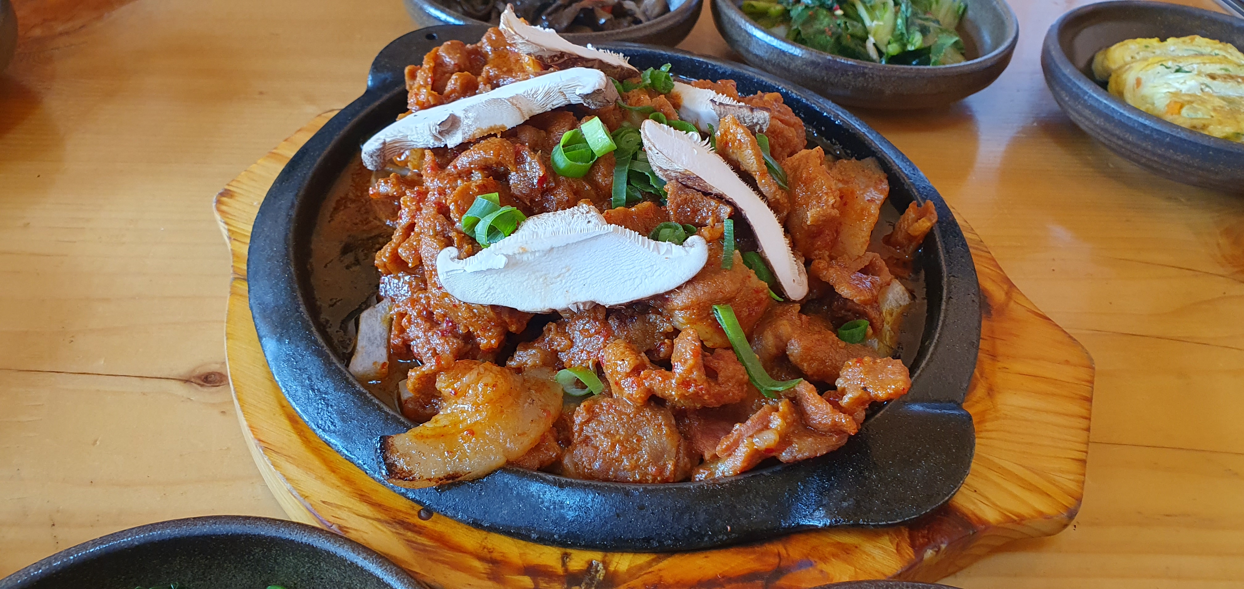 메인 요리중 하나인 철판 제육이 나옵니다. 그다지 맵지 않았지만..이것역시 기본에 충실한 맛이네요. 정말 특이하다거나, 맛이 출중하다거나 하지는 않았습니다 ㅎㅎ