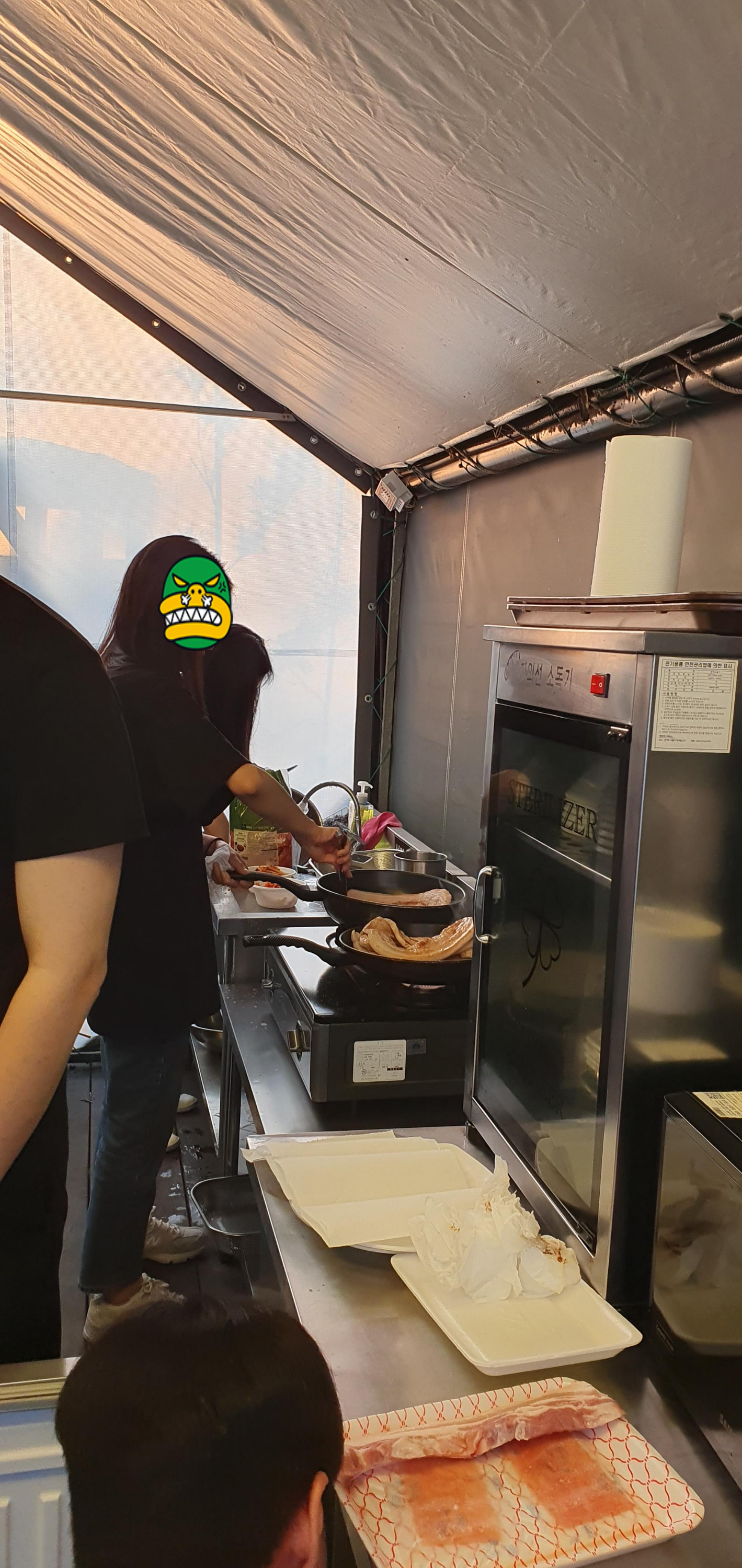 요건 프라이팬으로 열심히 초벌을 하고 있는 모습입니다. 여러명이서 동시에 준비하니 생각보다 빠르게 준비가 되더군요.