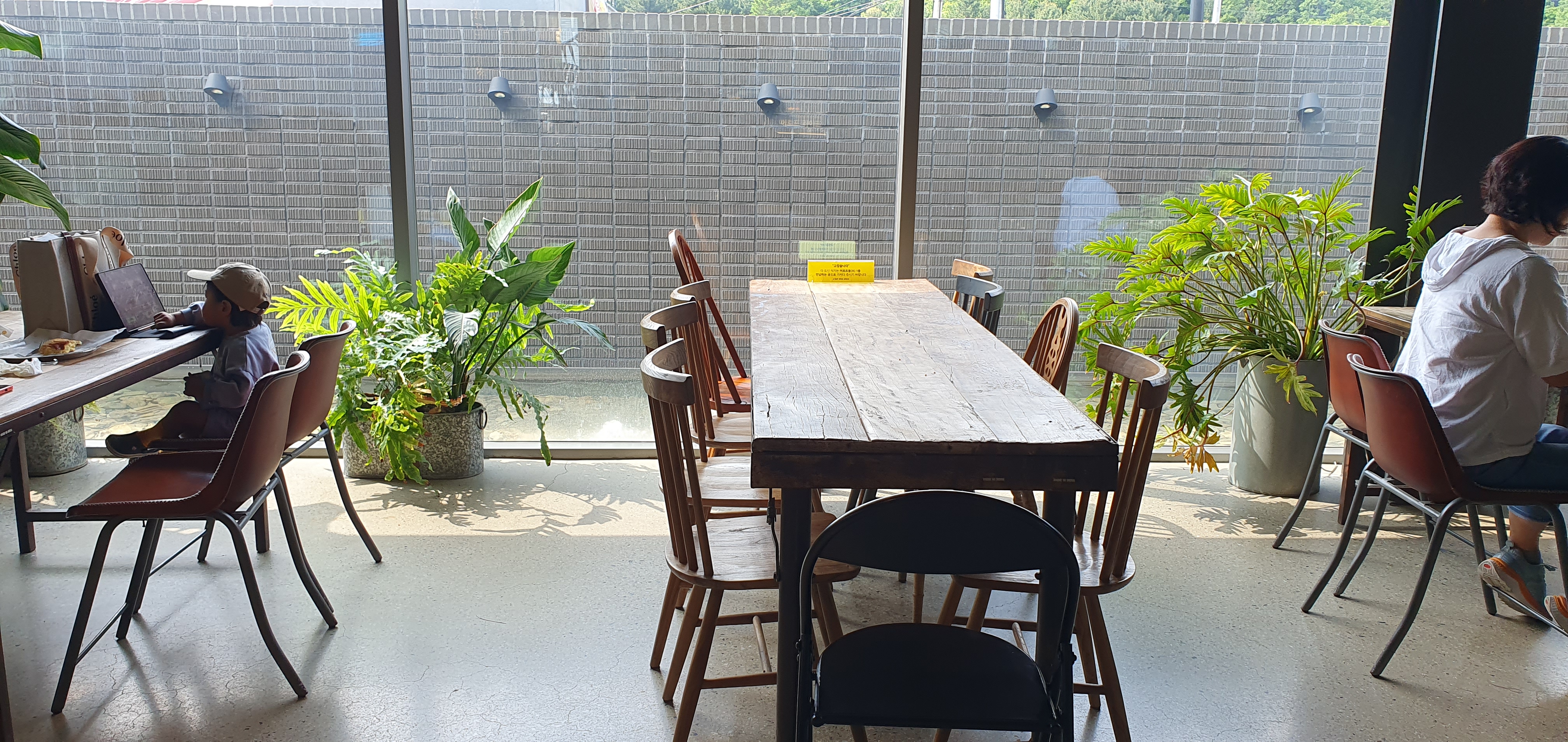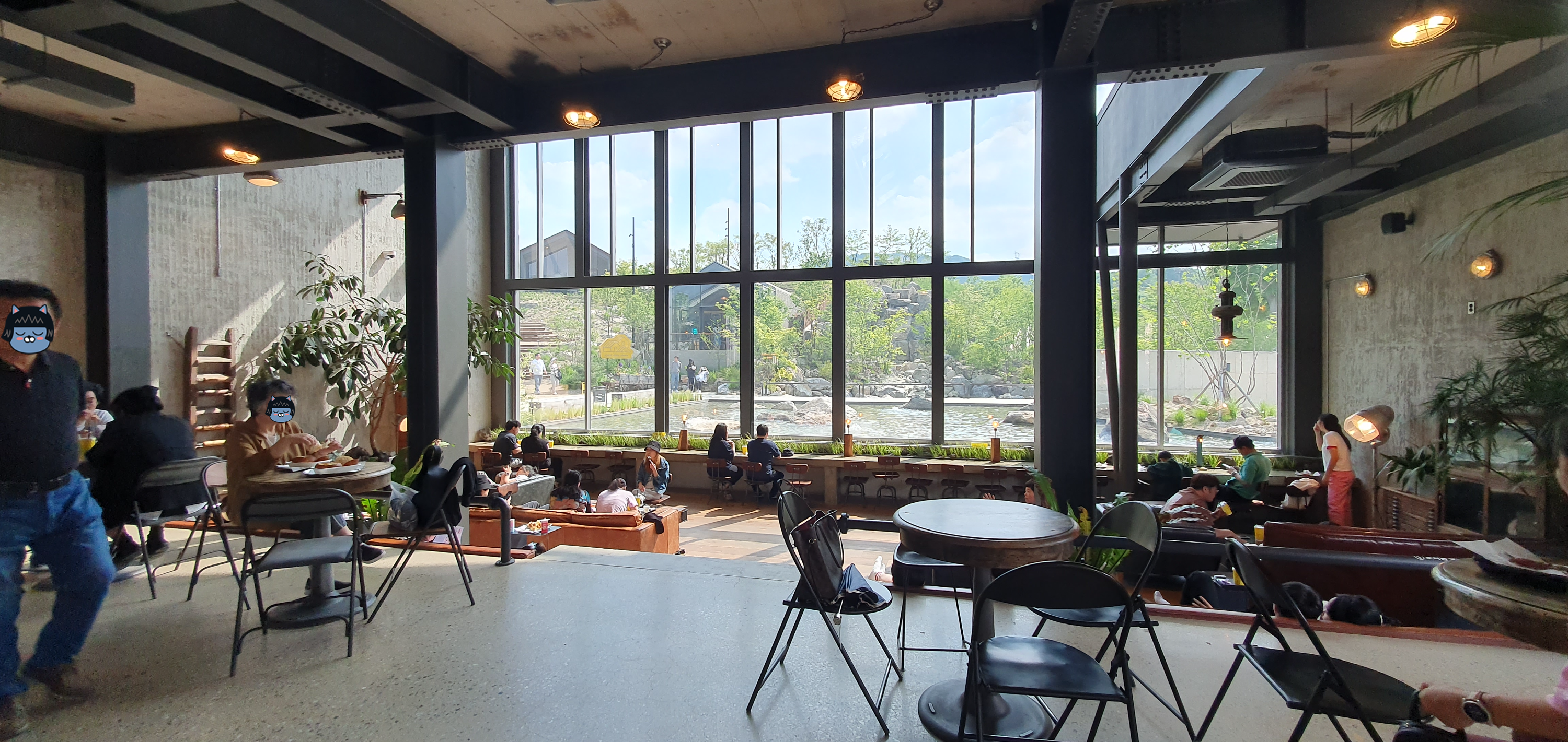 카페지만 거의 공원급의 오픈된 대형 카페입니다. 제가 가본 카페 중에 가장 돈을 많이 써서 만든 카페 같았습니다. ㅎㅎ 어차피 이런 카페들에 고급진 커피를 음미하러 간다거나, 최고급 수제 케익이나 빵을 즐기러 가지는 않습니다. 다만 탁 트인 공간에 애들이 신나게 뛸 수 있고 개방감 있는 인테리어로 야외 광장 같은 분위기는 충분히 느껴볼 수 있습니다.