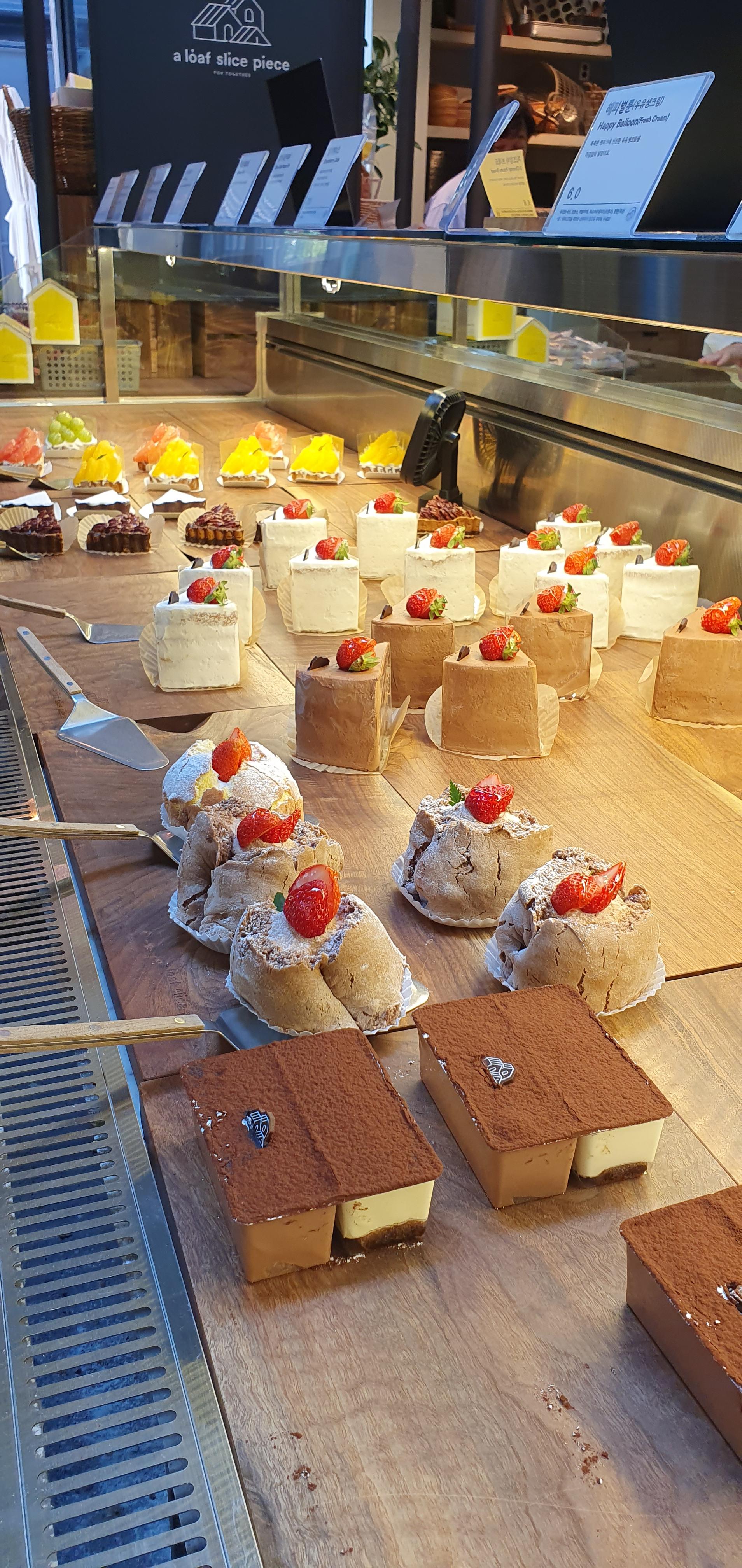 케익이 정말 예쁘고 다채롭습니다. 아무래도 머리에 올라앉은 딸기 한 점이 포인트인데, 케익은 또 너무 달 거라서 사지 않았습니다.
