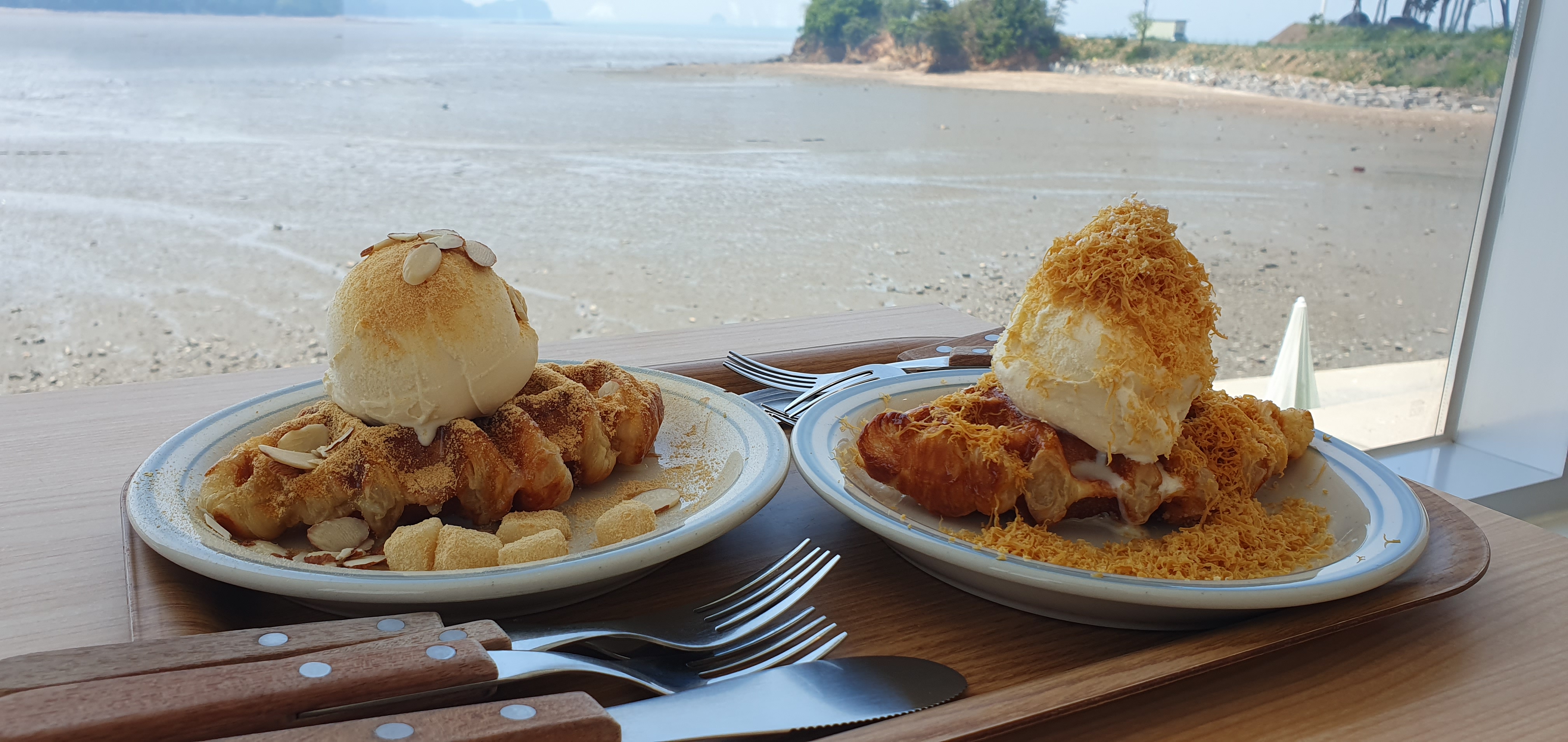 바다배경으로 멋들어지게 디저트 사진을 찍어 봅니다.