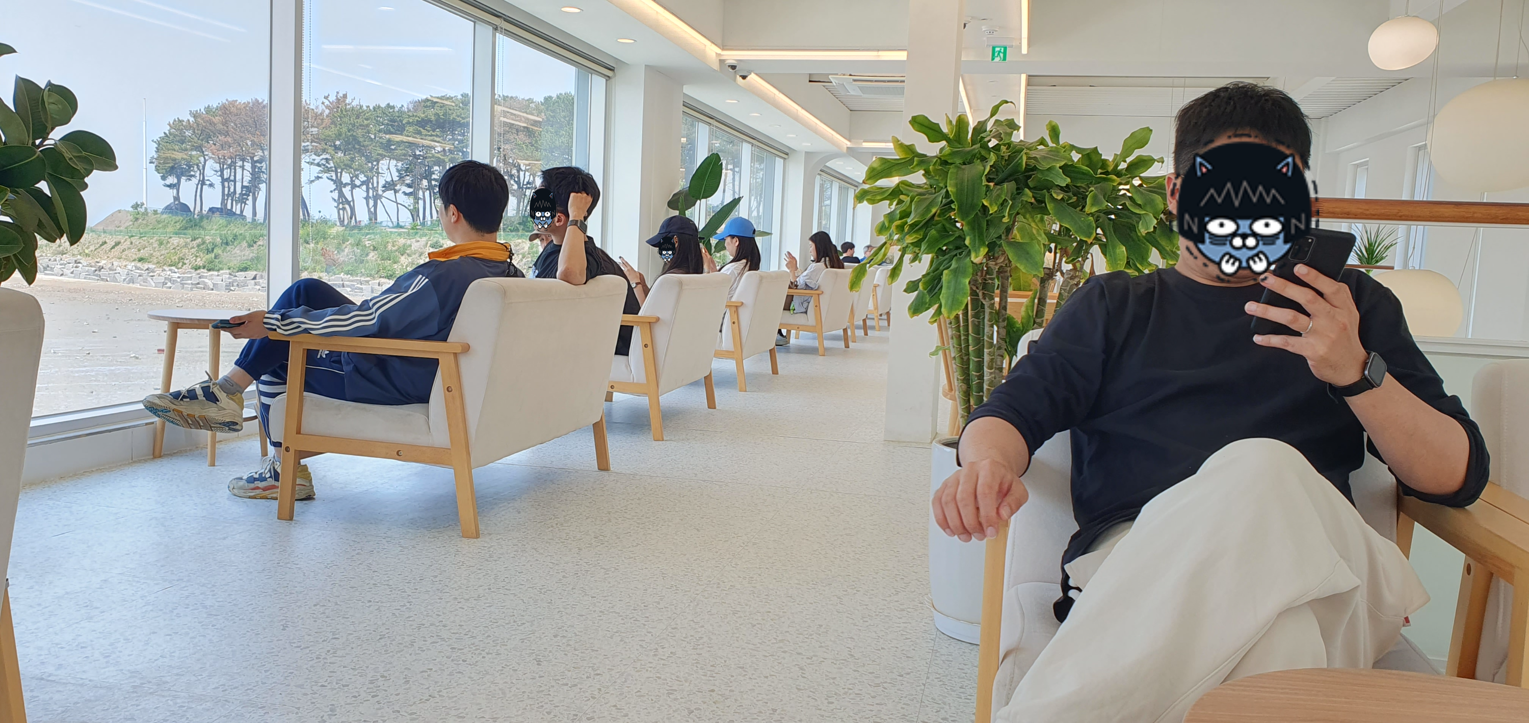 누가 시키지 않았는데..우리 전부 일행인데.. 다 떨어져서 창가쪽으로 앉았습니다. ㅋㅋㅋ 다들 창가뷰가 좋은가 봅니다. (단체석도 있었는데 말이죠~)