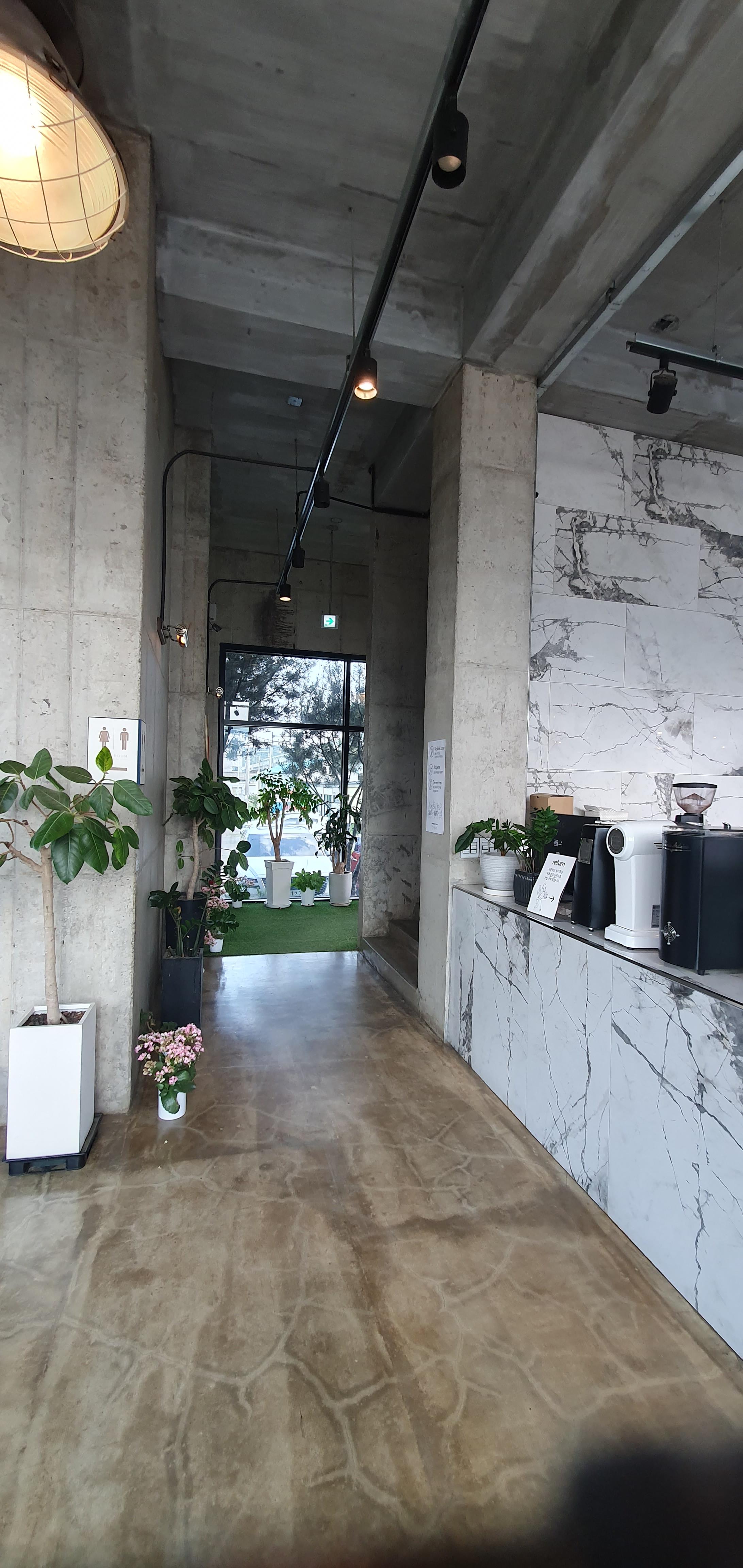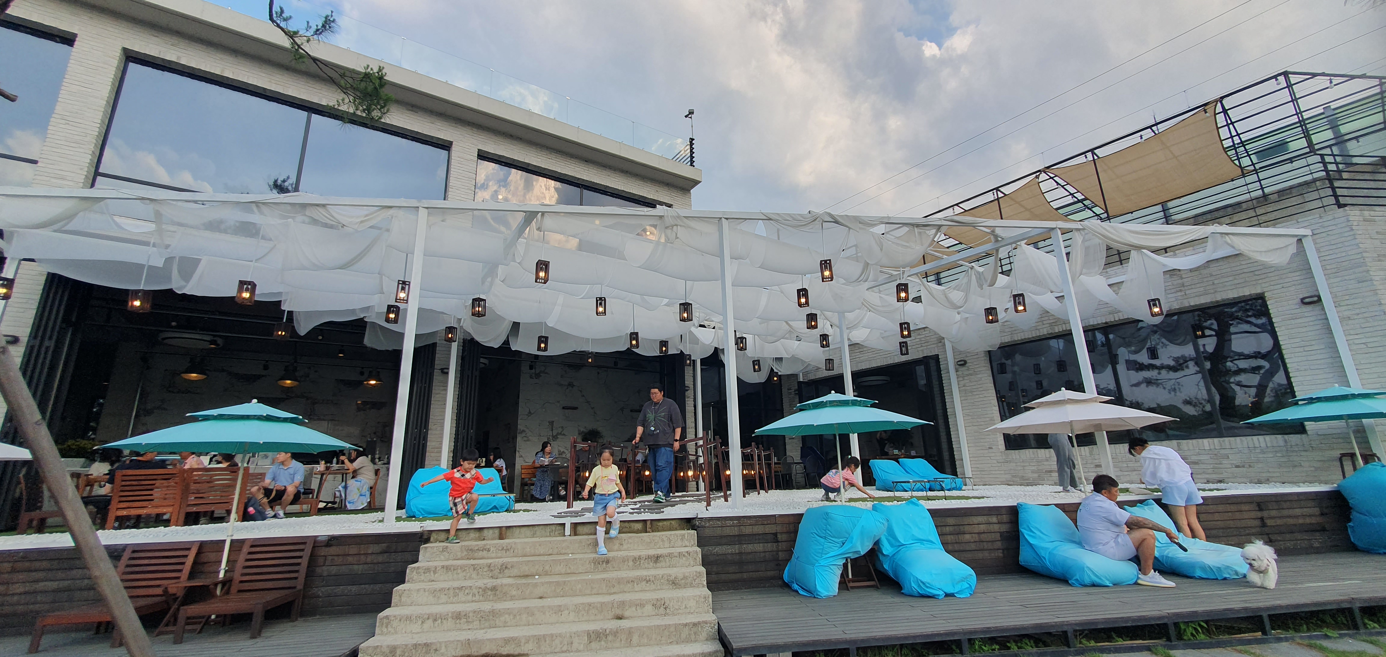 이 카페는 1층 앞마당이 포인트네요. 참 예쁘게 그리스 감성으로 잘 꾸며 놨습니다.