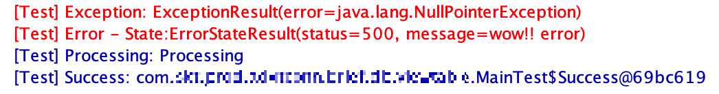 Processing은 data object이므로 toString()이 override 되어있어 예쁘게 로그가 남지만, Success의 경우 object이므로 메모리 주소와 함께 전체 package 패스가 다 남습니다.
