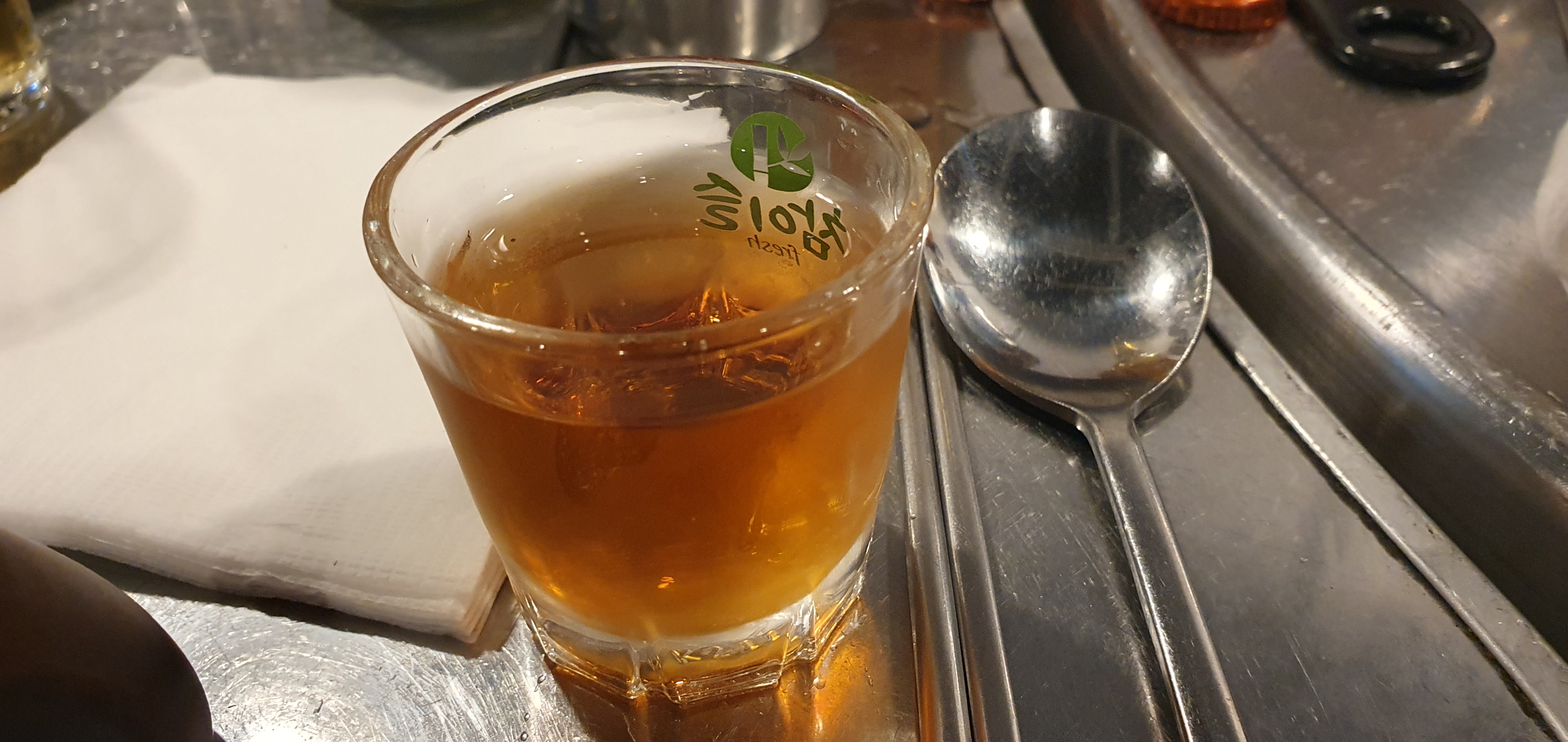 메뉴에는 없지만 더치소주를 주문하게 사장님이 한라산에다가 커피를 살짝 넣어서 더치 소주를 만들어 주십니다. 주문 하니 사장님이 "17도? 21도?" 라고 물으셨는데, 쿨하게 17도로 달라고 했습니다.
