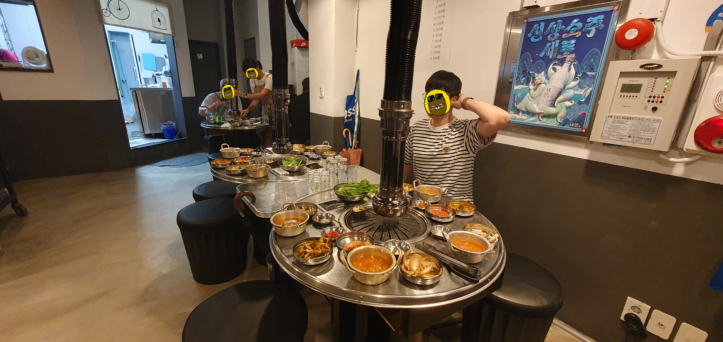 정말 매번 갔던 회사앞 고깃집을 가려다가 맛있는집이 있다고 추천을 받아서 예약했습니다. 10자리를 예약했는데..회의가 안끝나는 바람에 네명이서 테이블 두개를 잡고 있었네요..;;