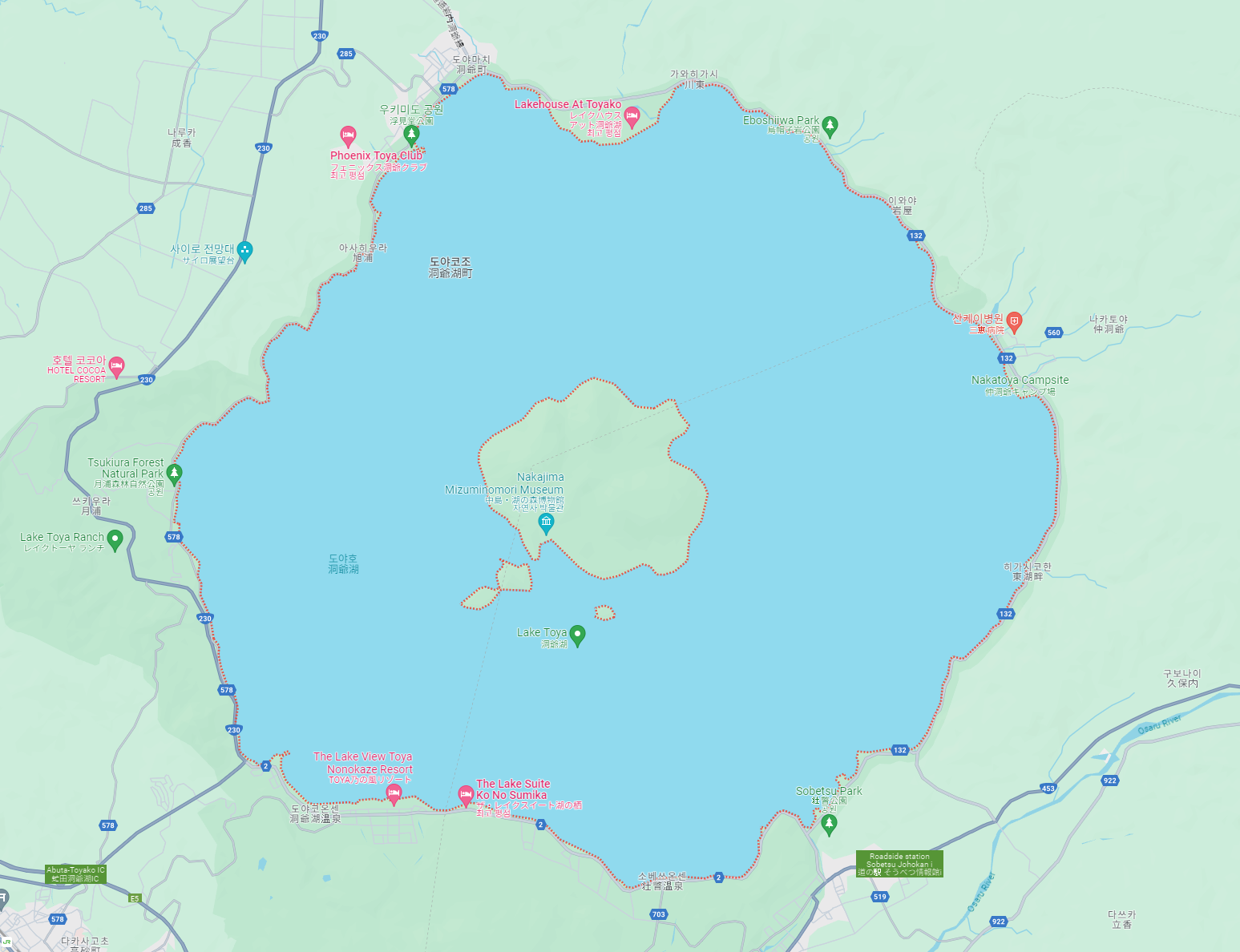 도야호수는 일본에서 아홉번째로 큰 호수로 호수안에 네개의 섬을 가지고 있습니다.