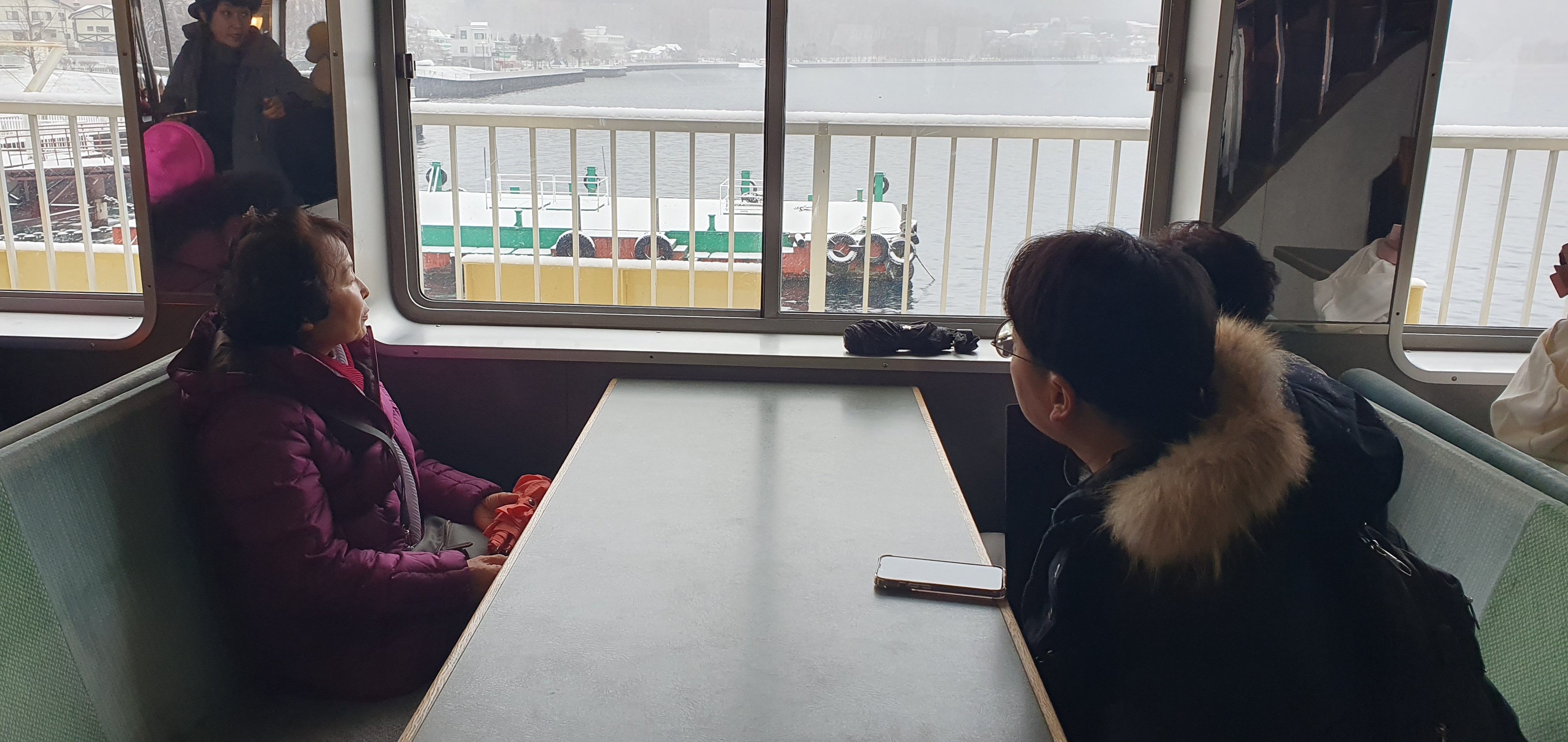 눈이 많이 온 덕분에 시야는 흐리지만 일단 30분정도 배를 타고 호수를 유람 합니다.