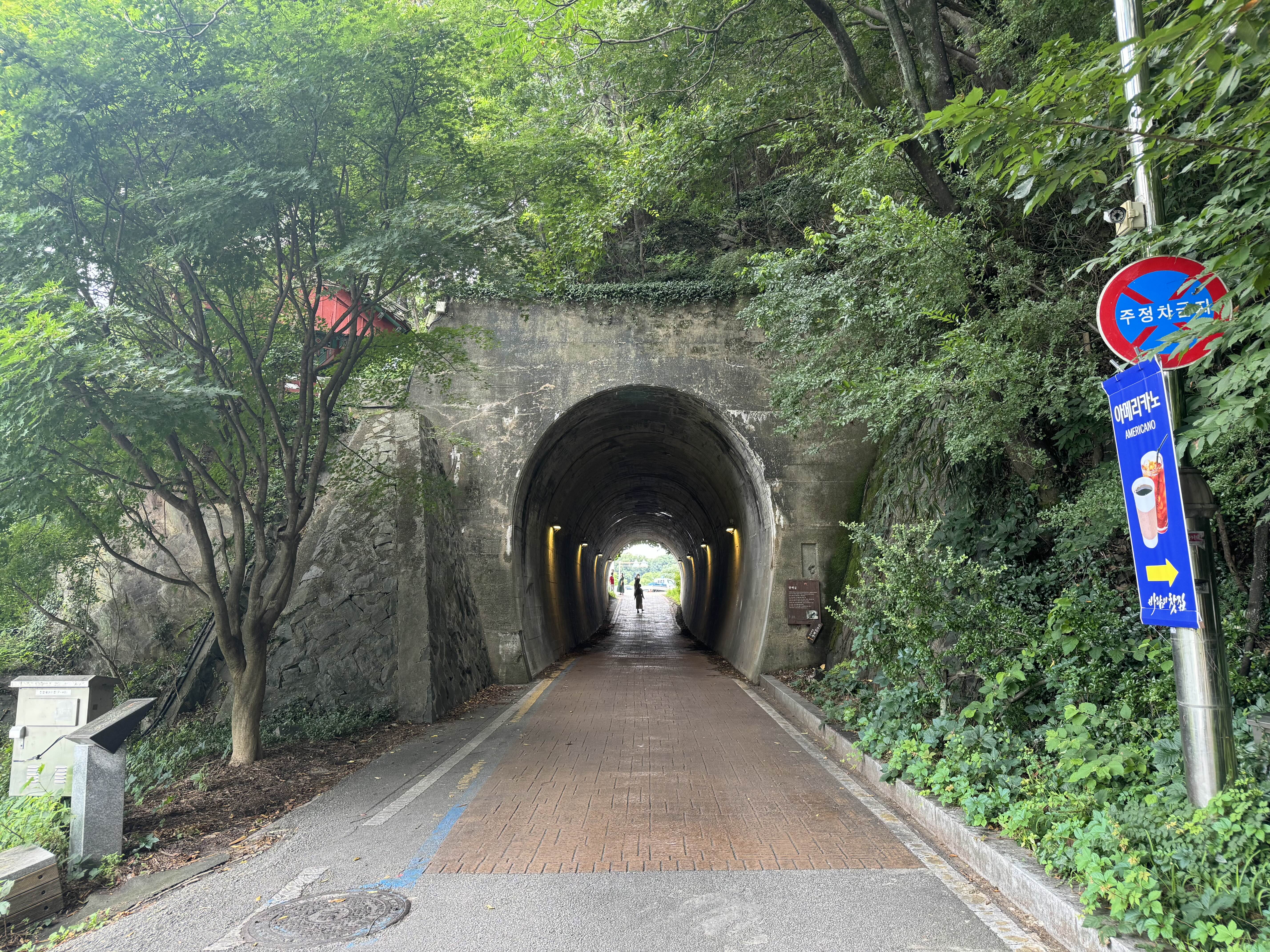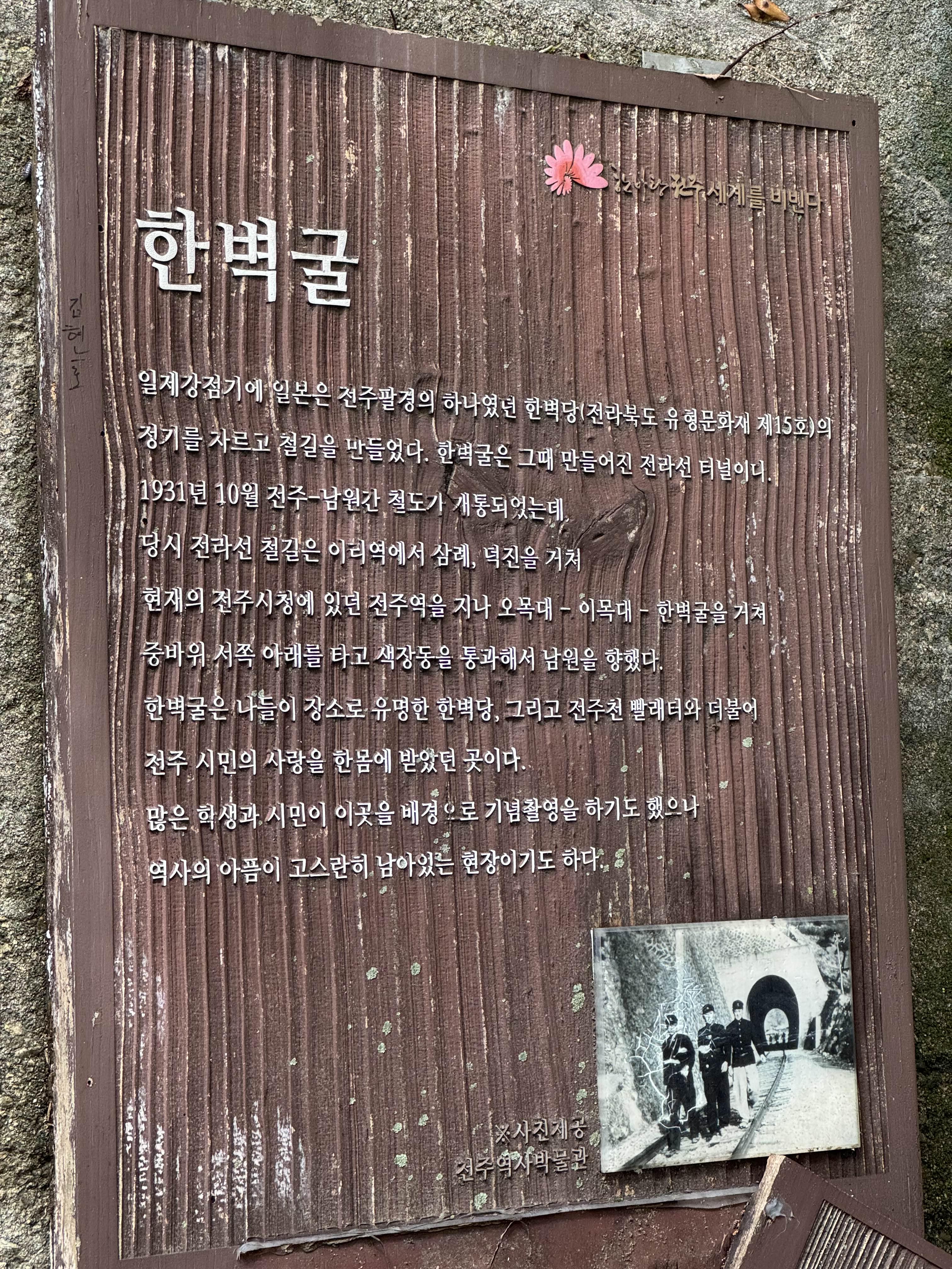 원래는 한벽당의 정기를 자르려고 일제시대에 뚫었던 굴이고 철길이었다고 하네요.