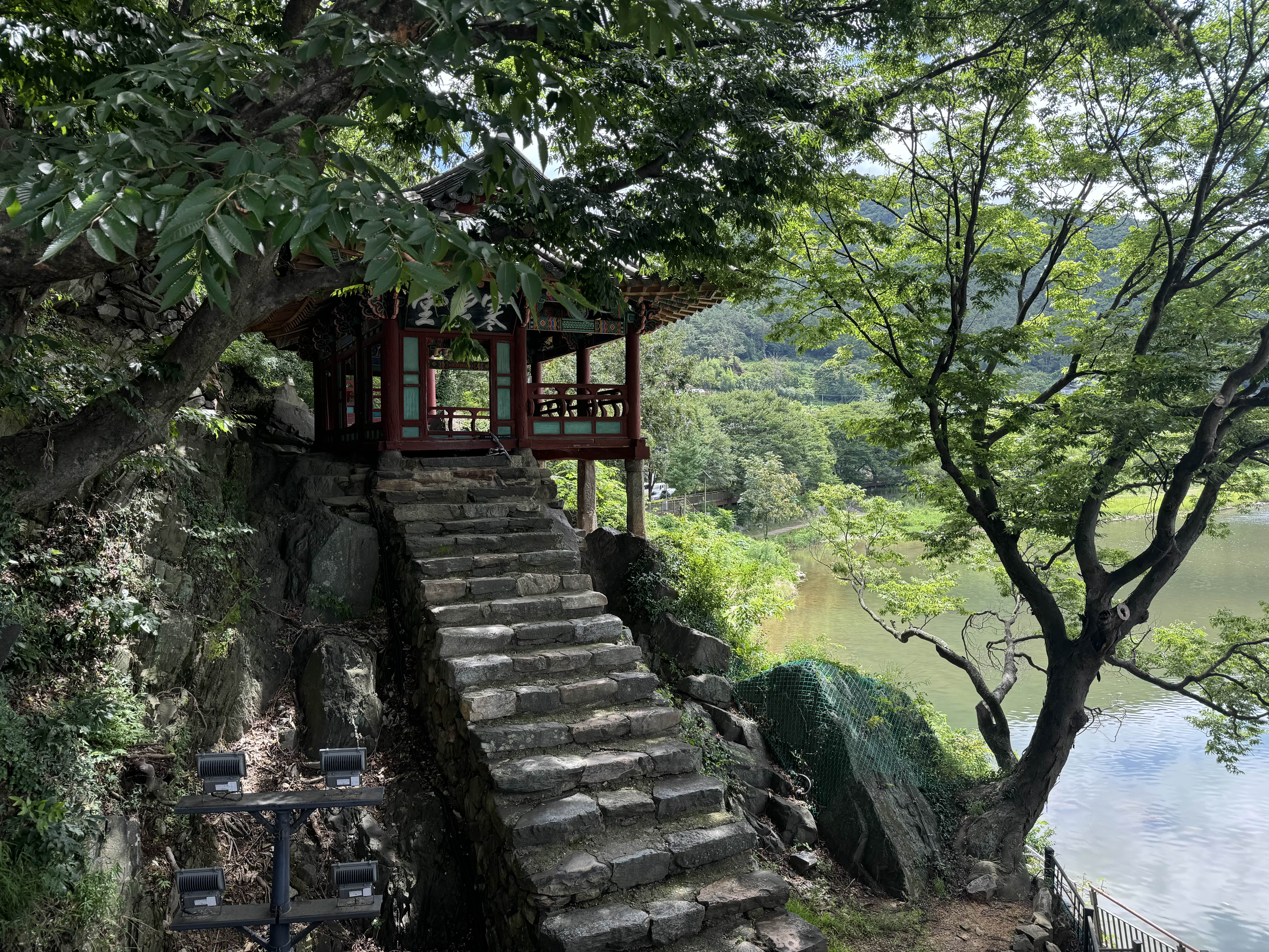 정자에 올라가 보려면 한벽굴을 들어오기 전에 강쪽으로 내려가는 산책길로 돌아 들어가야 합니다.