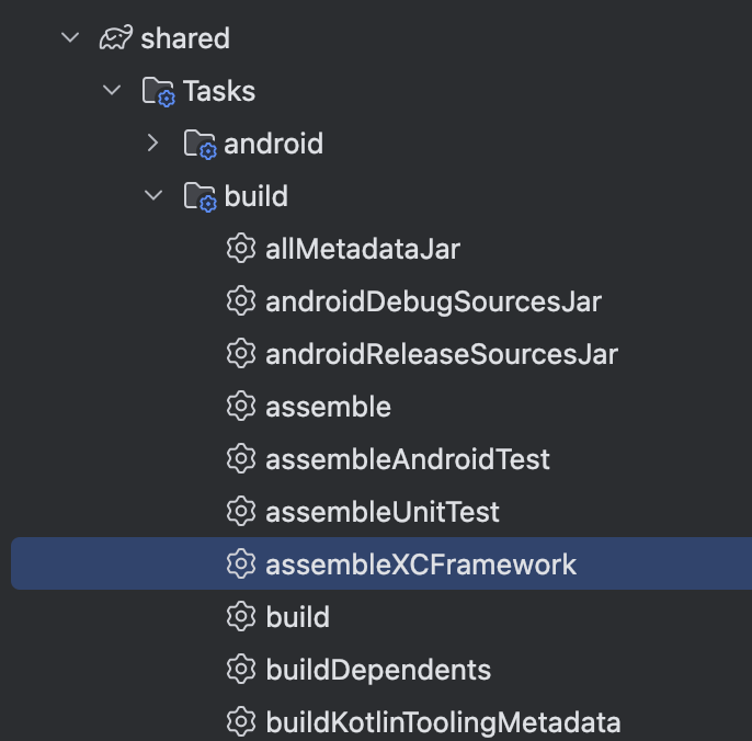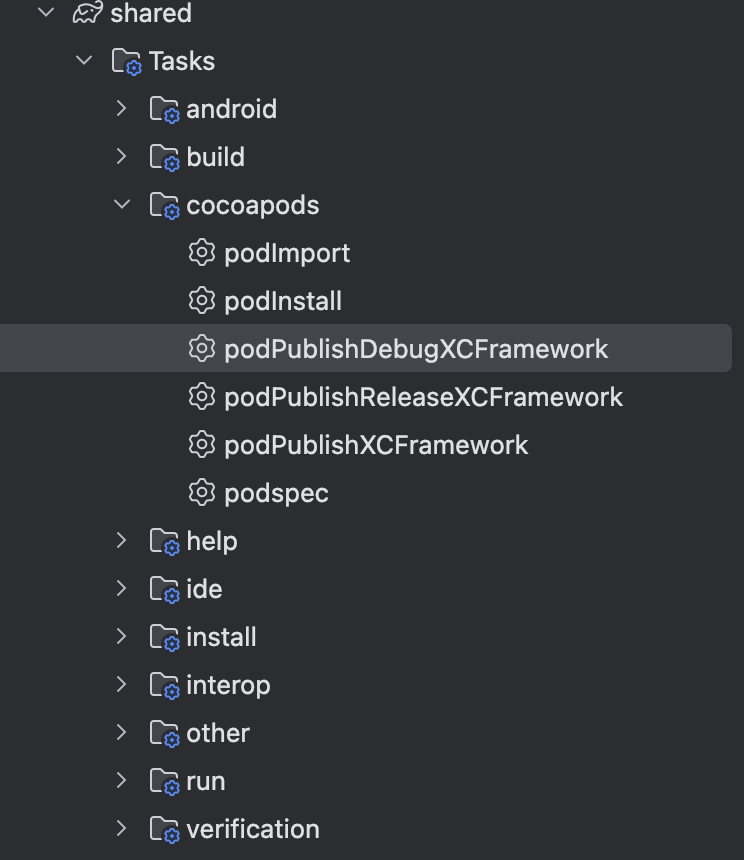 debug나 release만 또는 두개모두를 빌드할수 있는 명령어셋이 존재하여 클릭시 'shared/build/cocoapods' 폴더에서 빌드된 결과를 얻을 수 있습니다.