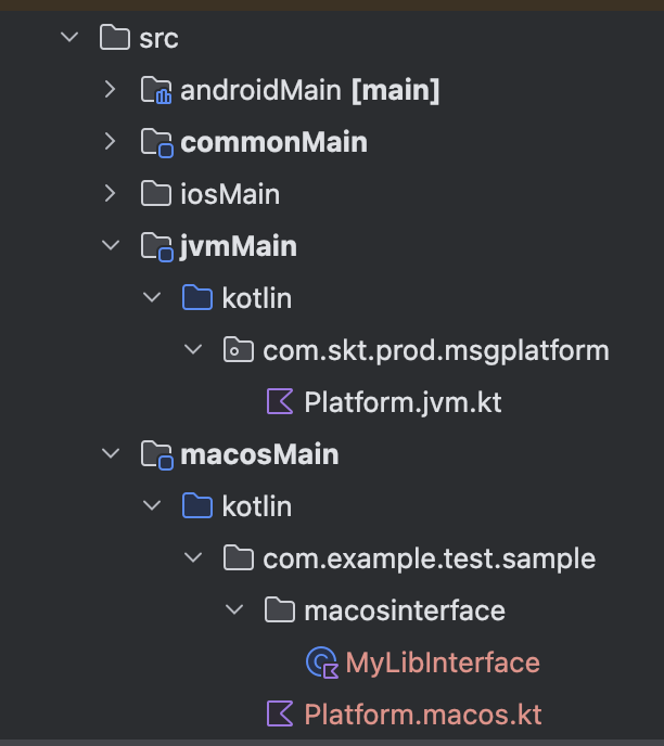 먼저 src에 macosMain 폴더를 위와 같은 구조로 만듭니다.