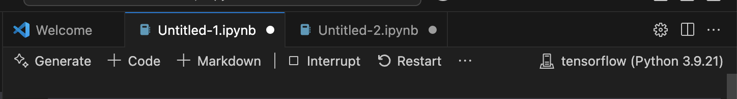 conda create -n tensorflow python=3.9 //'tensorflow' 라는 가상환경 생성, 버전은 3.9