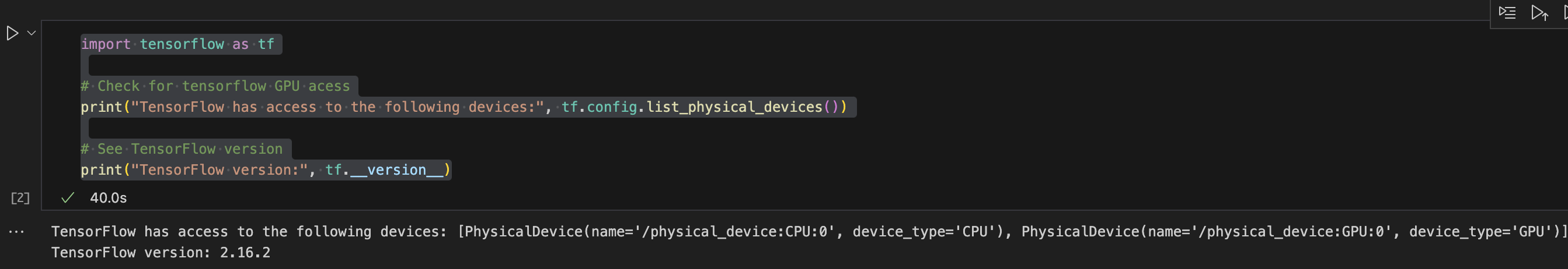 print("TensorFlow has access to the following devices:", tf.config.list_physical_devices())